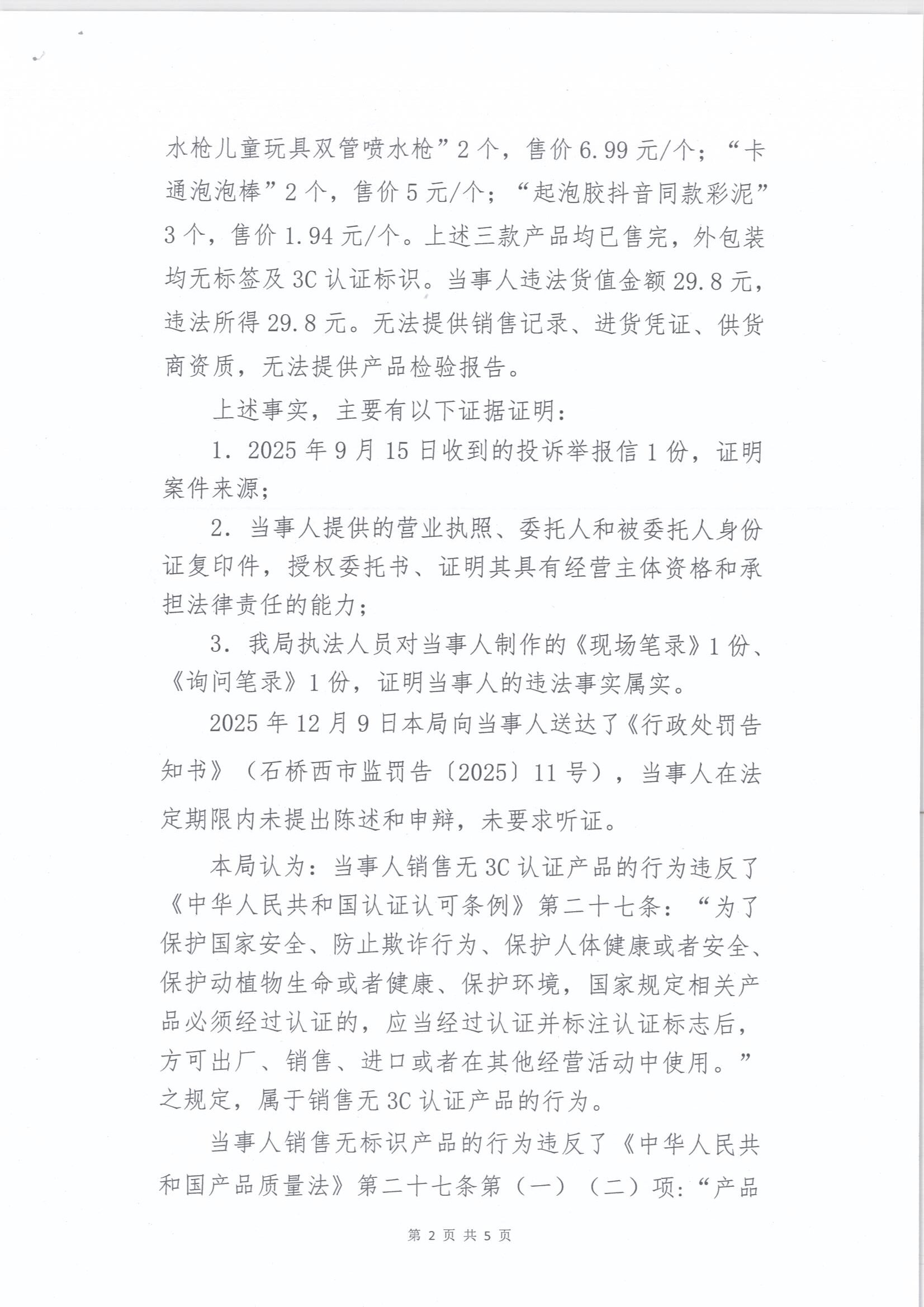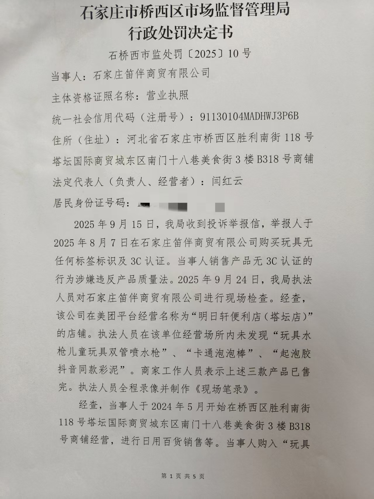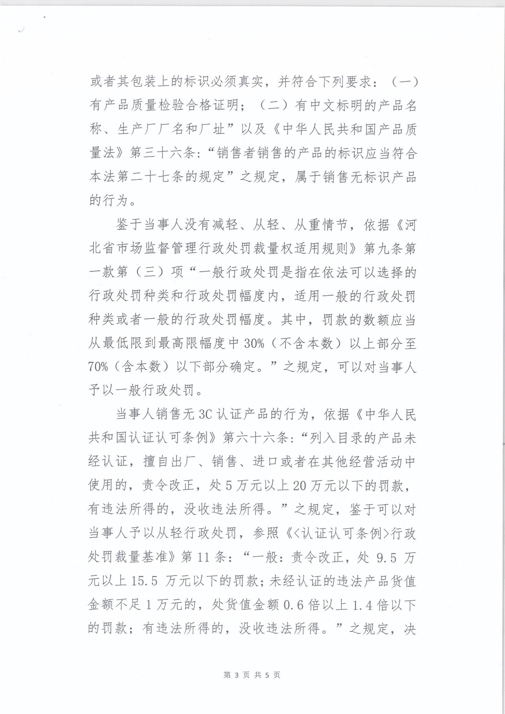 石家庄笛伴商贸有限公司销售无3C认证的商品等行为案