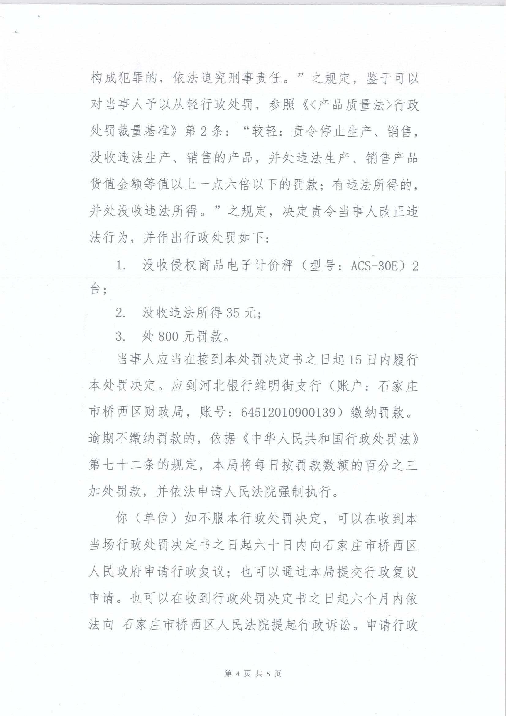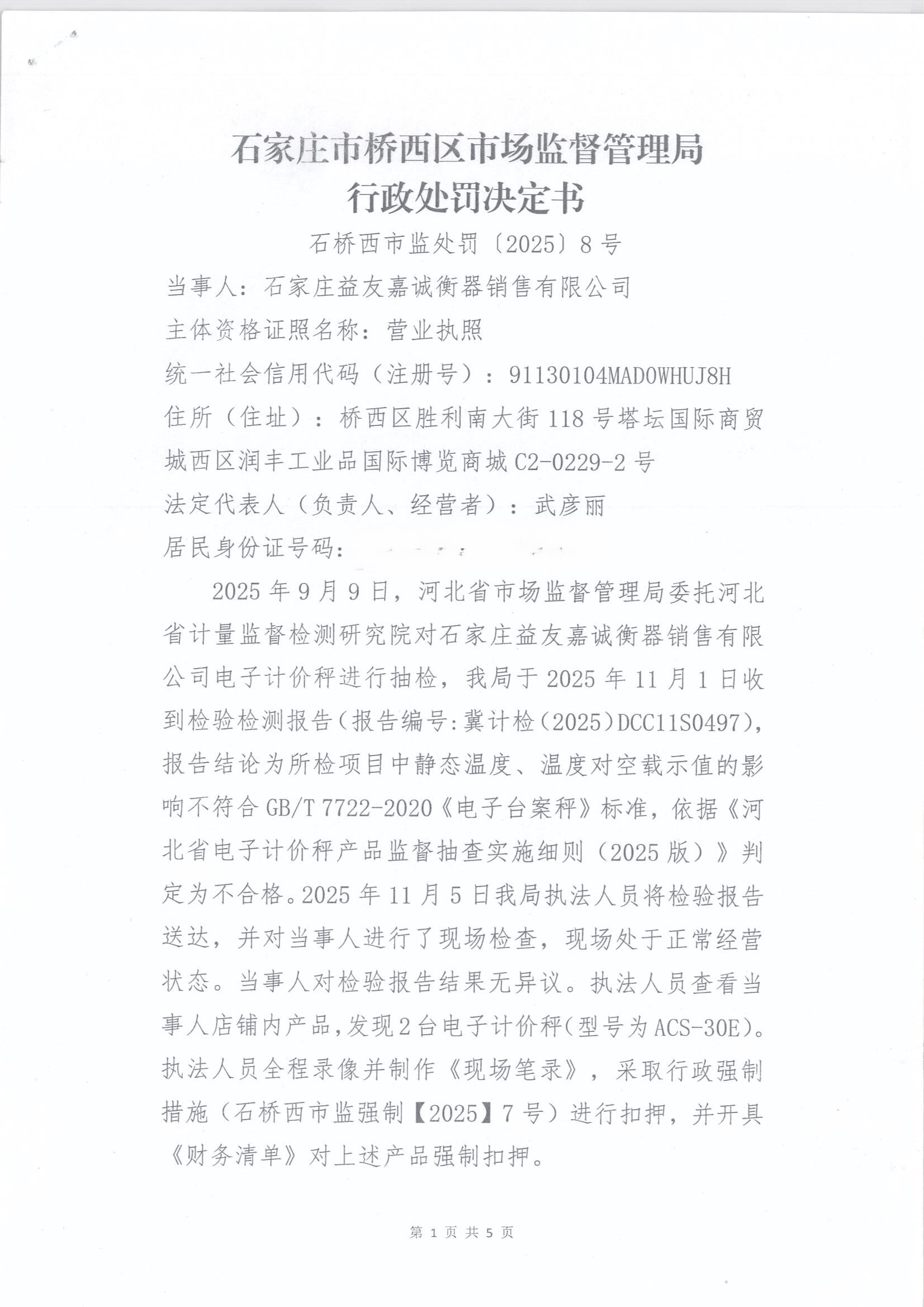石家庄益友嘉诚衡器销售有限公司涉嫌销售不合格产品案