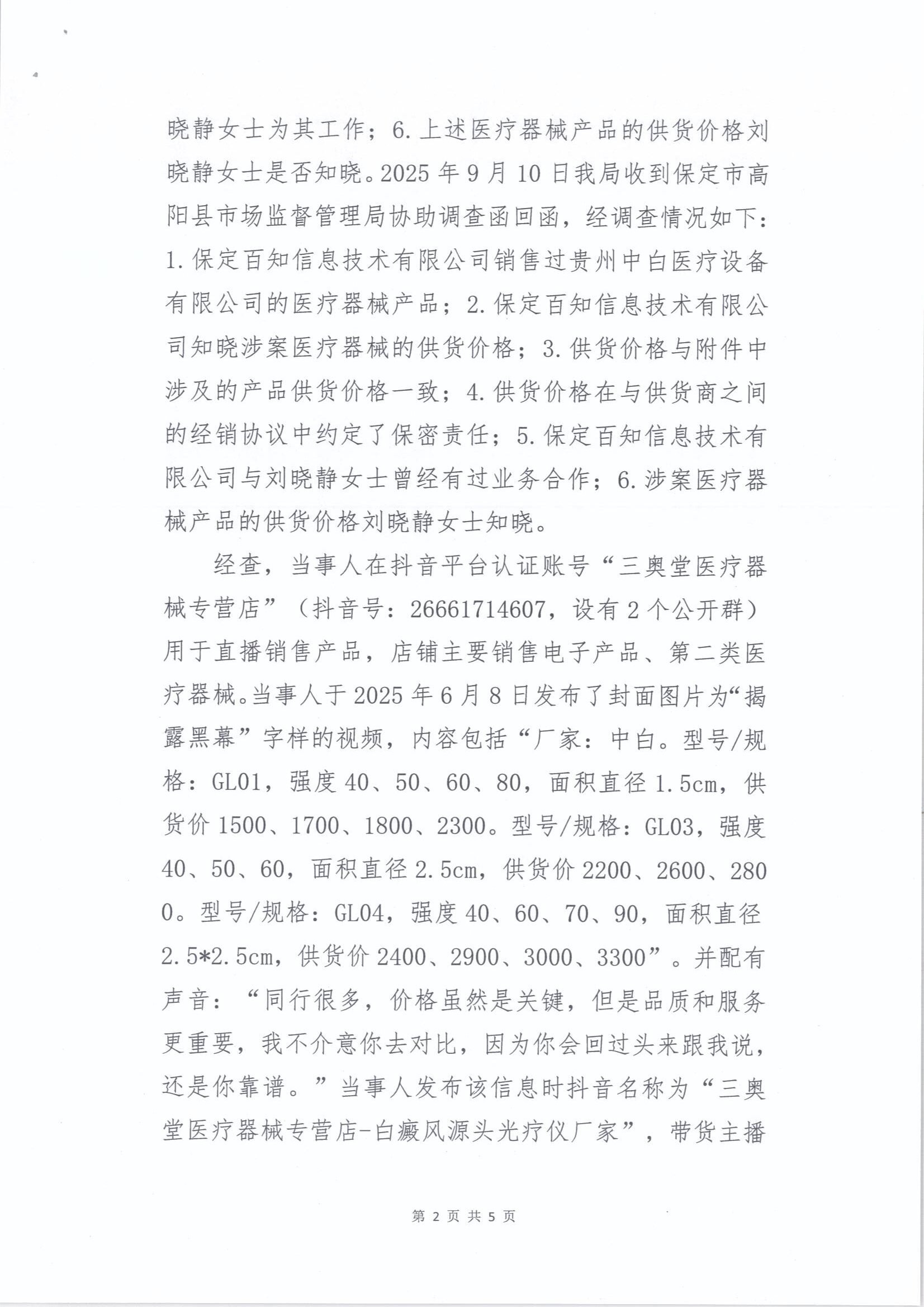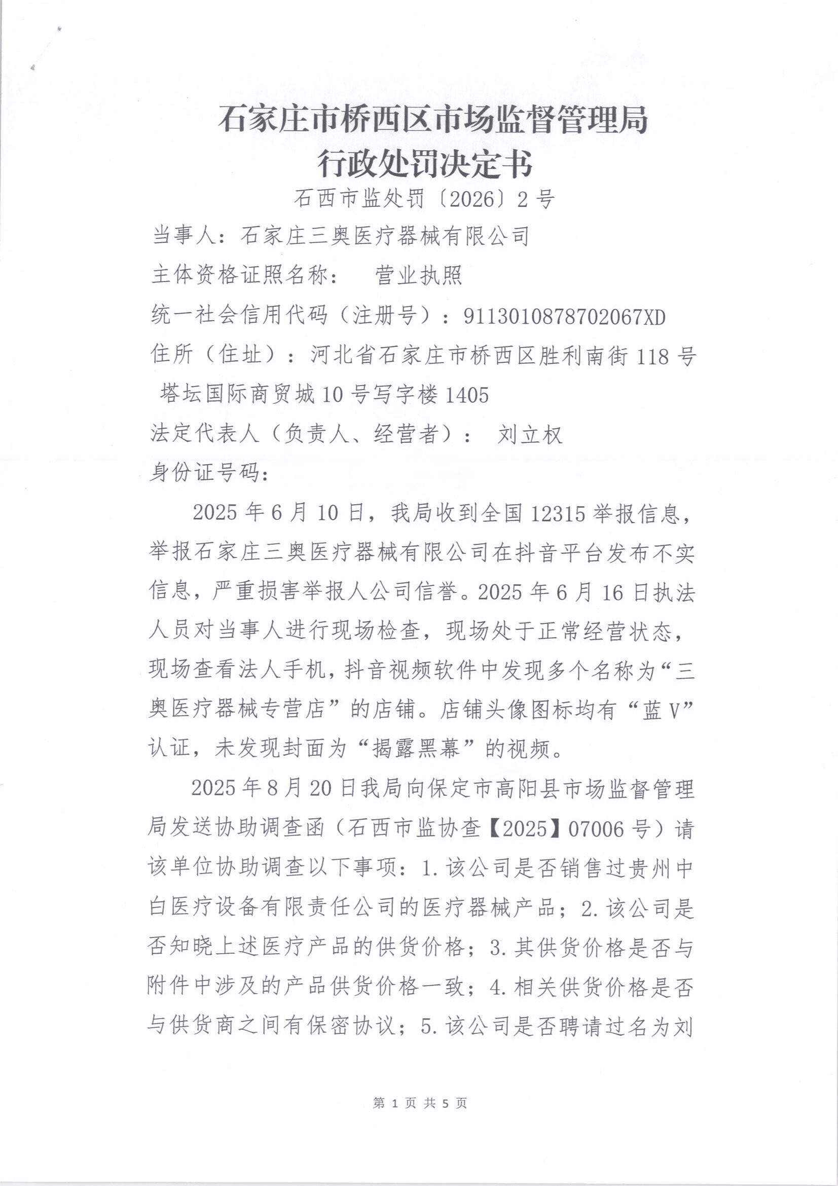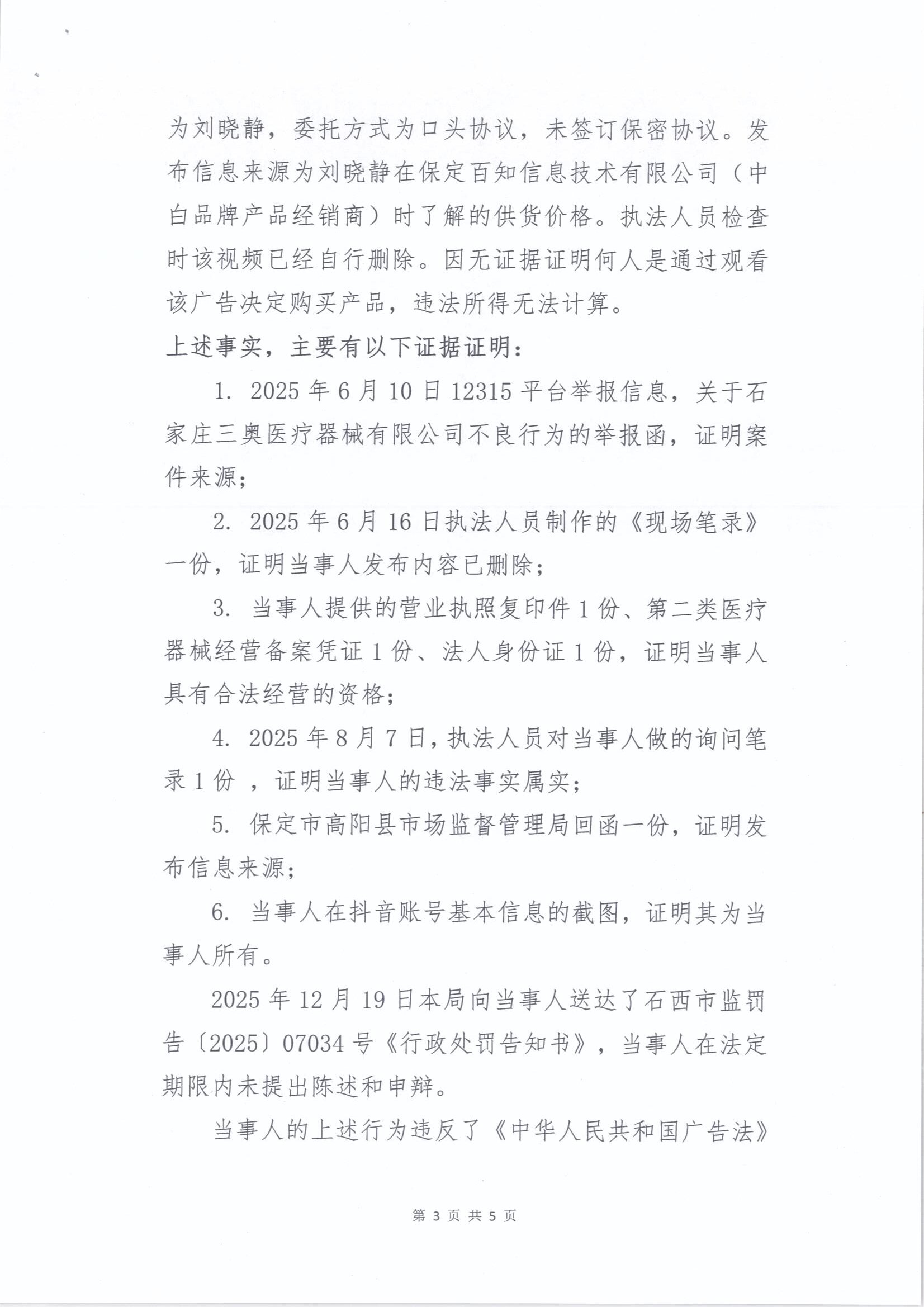 石家庄三奥医疗器械有限公司涉嫌发布商业诋毁类广告案