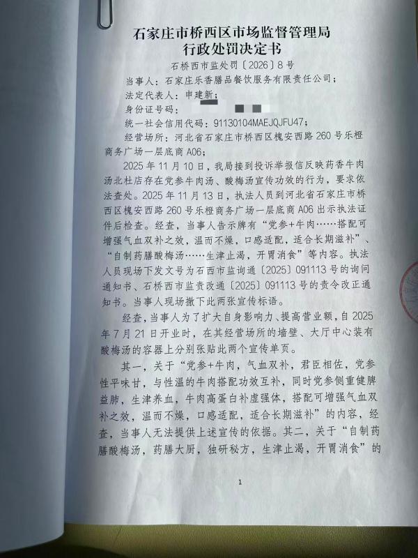 石家庄乐香膳品餐饮服务有限责任公司作引人误解的商业宣传案