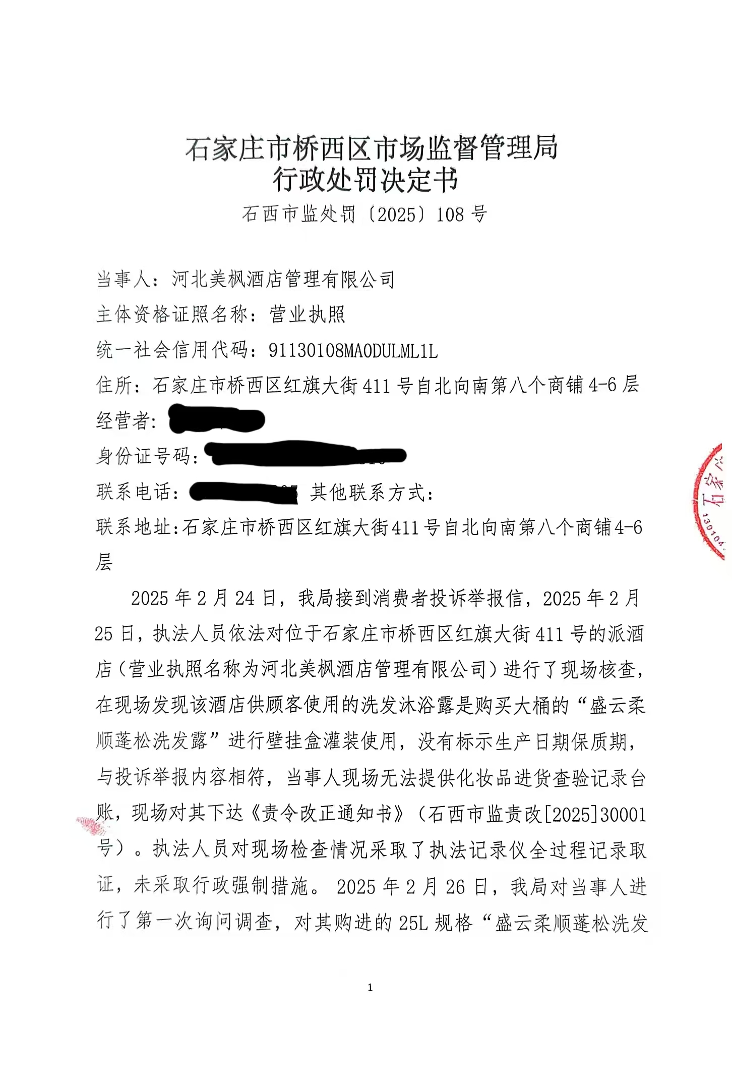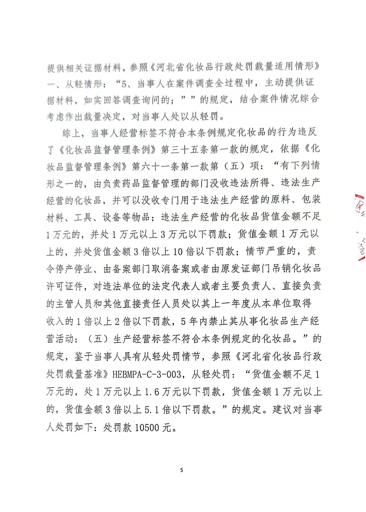河北美枫酒店管理有限公司经营标签不符合条例规定化妆品和未建立并执行进货查验记录制度化妆品案
