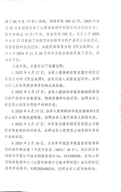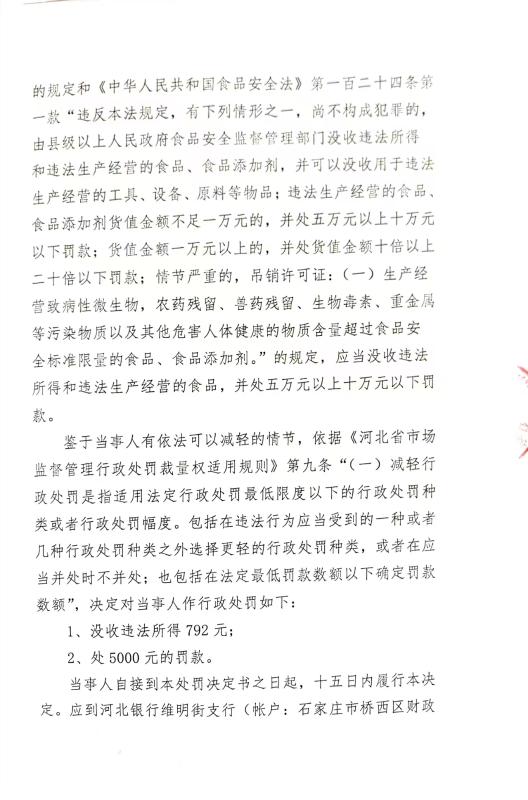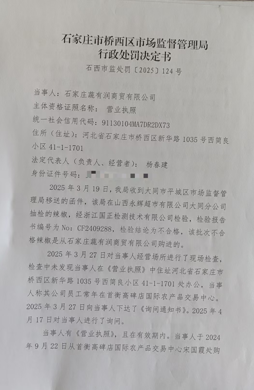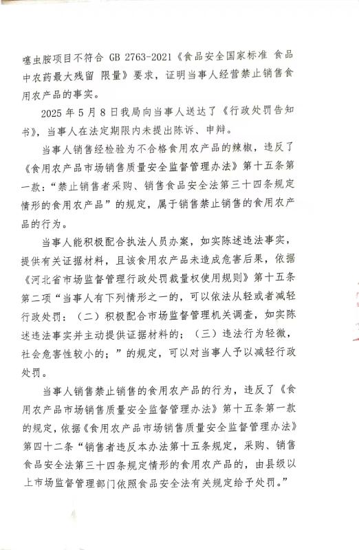 石家庄蔬有润商贸有限公司销售禁止销售的食用农产品案