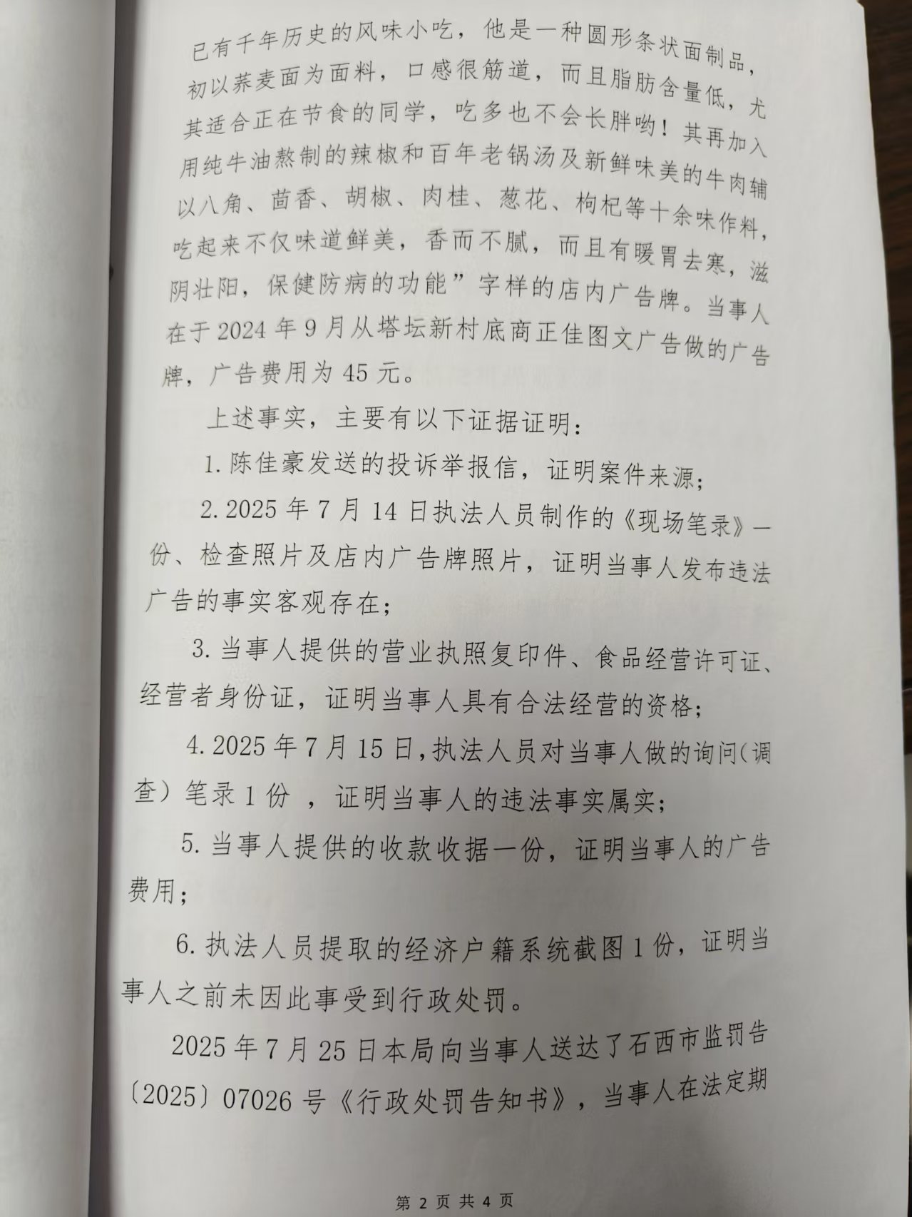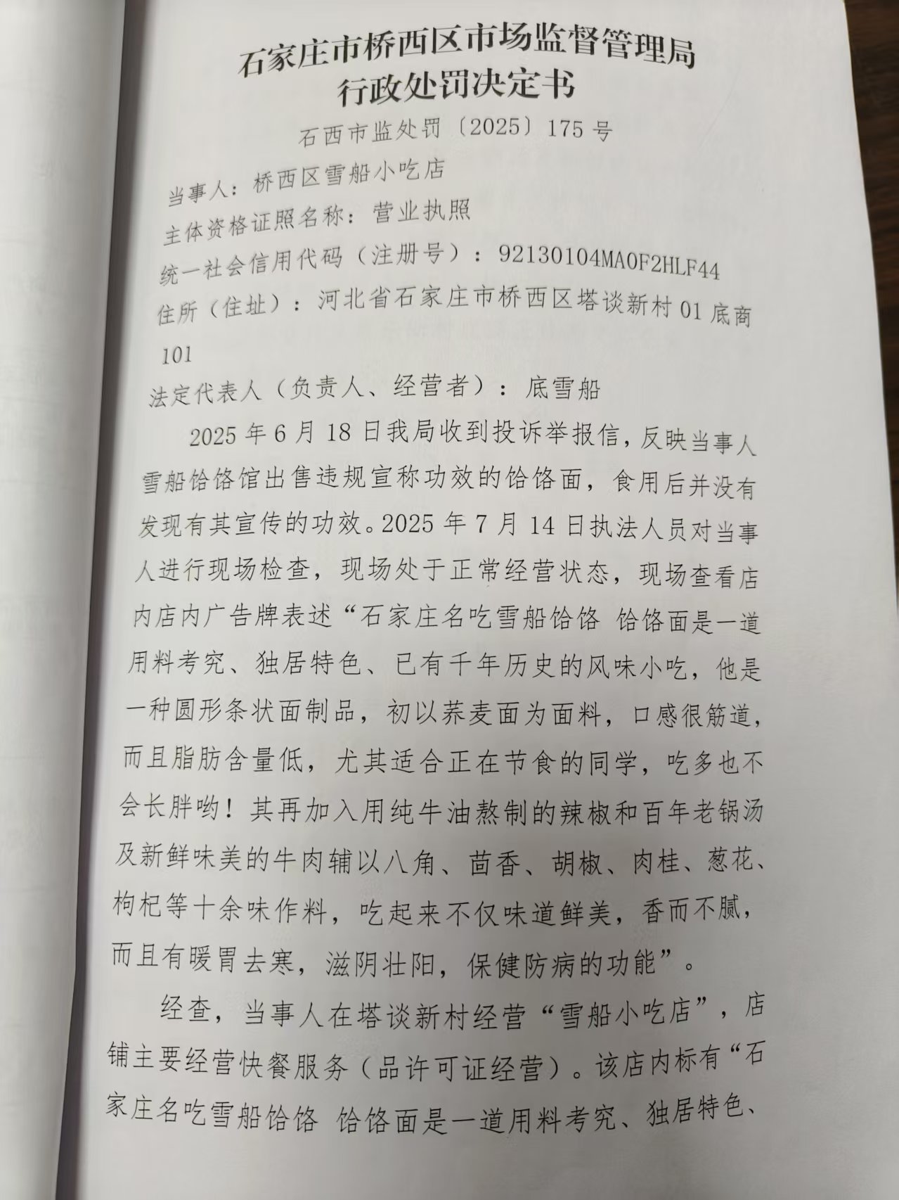 桥西区雪船小吃店发布违法广告案