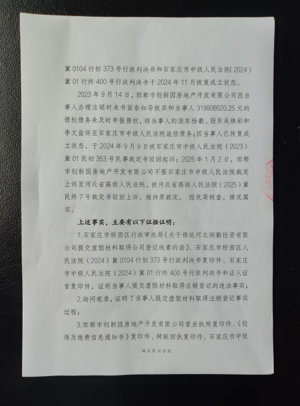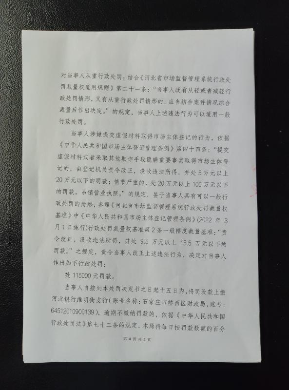 河北润勤投资有限公司提交虚假材料取得市场主体登记案