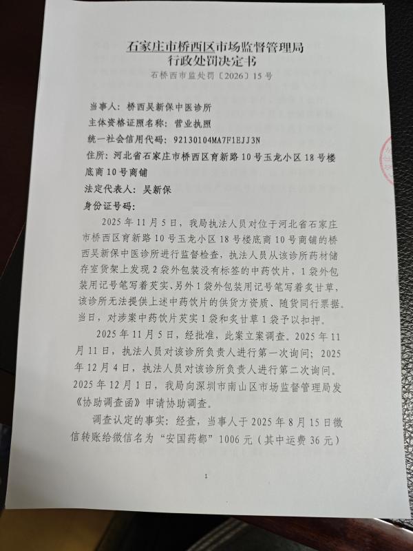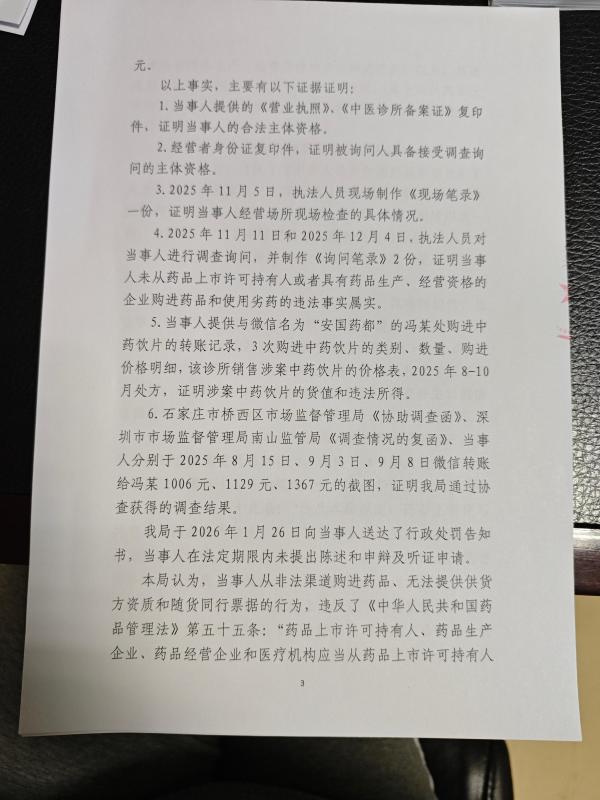 桥西吴新保中医诊所未从药品上市许可持有人或者具有药品生产、经营资格的企业购进药品和使用劣药案