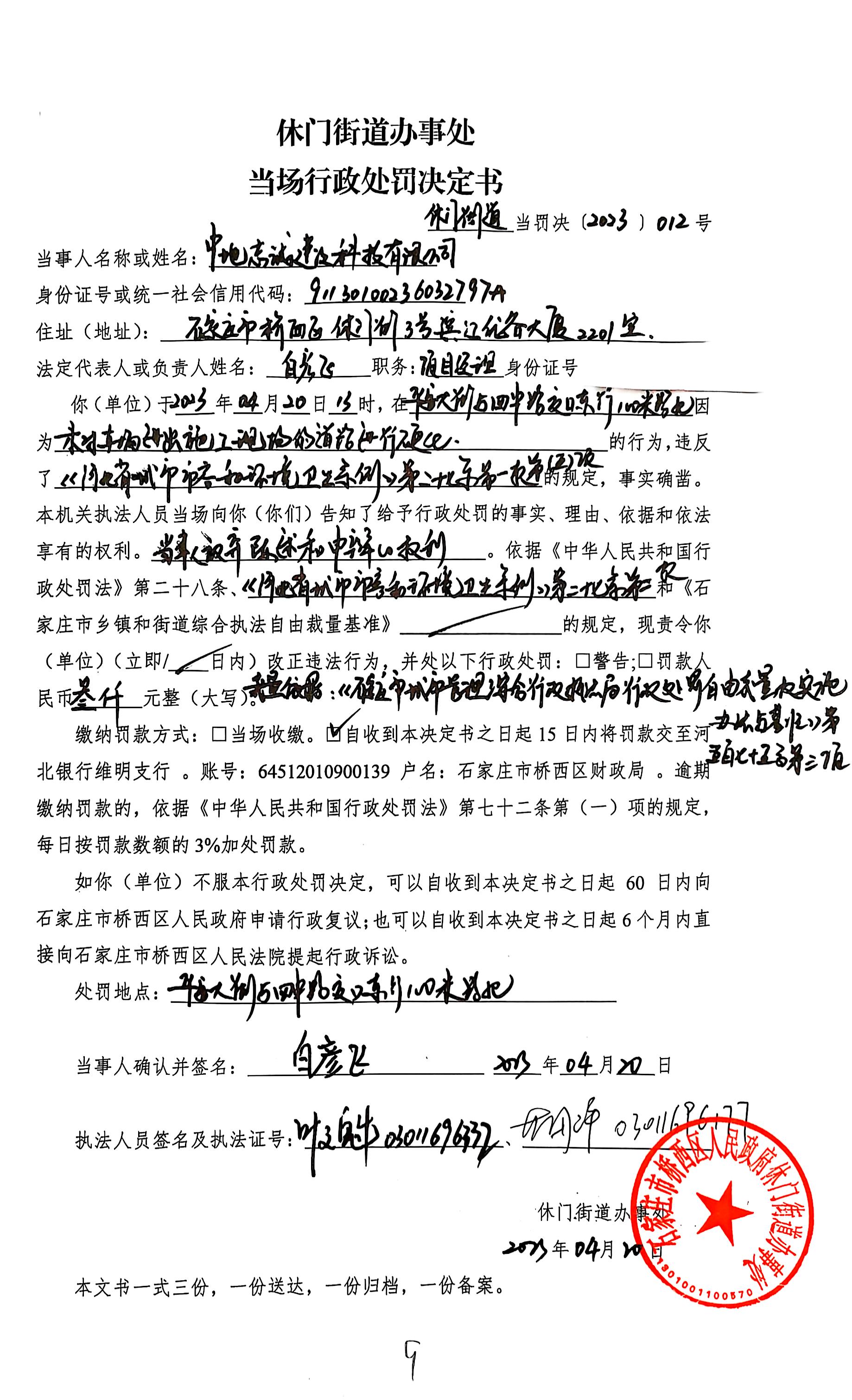 休门街道当罚决【2023】012号 | ||