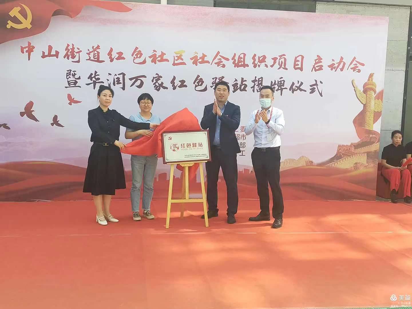 中山街道举办红色社区社会组织项目启动会暨华润万家红色驿站揭牌仪式