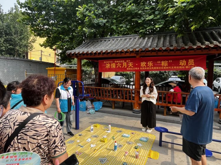 6月4日,东风街道东风路南社区党委、东风路南社区新时代文明实践站联合德仁社工开展“浓情六月天·欢乐‘粽’动员”端午节游园会活动。