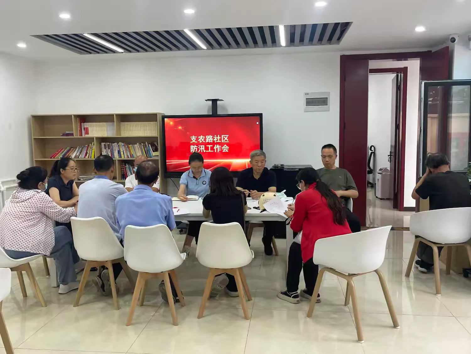 支农路社区组织辖区物业企业、生产单位等负责人,召开防汛专项工作会议。会后,社区相关负责人带队检查老旧小区改造施工工地、明月装饰城、小区地下室等重点区域。重点查看明月装饰城防汛物资准备情况、防汛预案、排水系统、排水口是否会有倒灌风险以及所属平房安全问题,并督促各物业、老旧小区改造的施工单位严格按照上级要求加强人员值班值守,认真做好相关防汛措施。