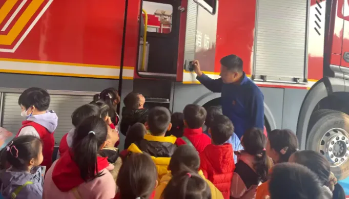 11月6日,东里街道恒大社区组织开展参观消防队活动,带领孩子们近距离观察消防车、消防器材等,帮助孩子在趣味活动中学习消防安全知识。