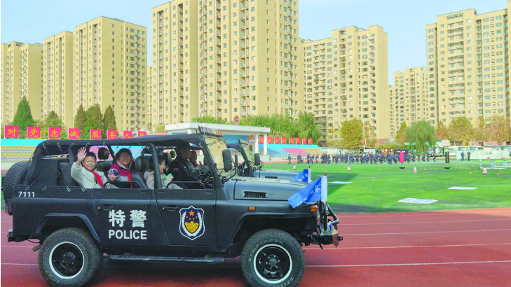 ■队员们体验乘坐酷酷的特警车。刘健 摄