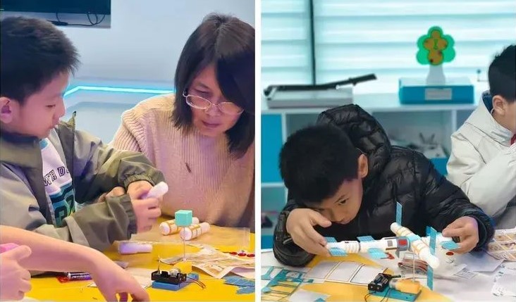 活动中,志愿者向孩子们科普中国航天知识,与孩子们互动,并解疑答惑。参加活动的孩子们通过动手实践,在实践中学习,感受航天科技的魅力。