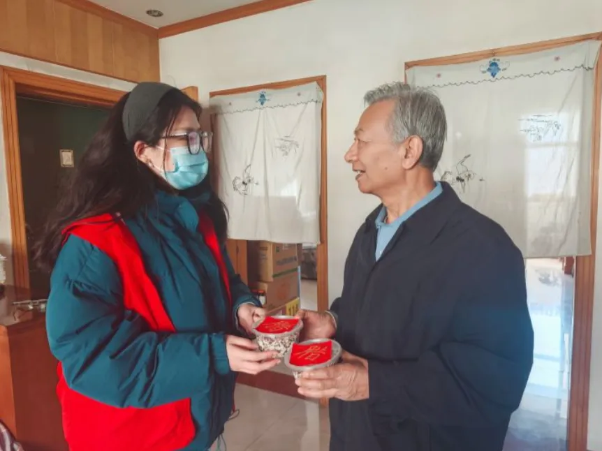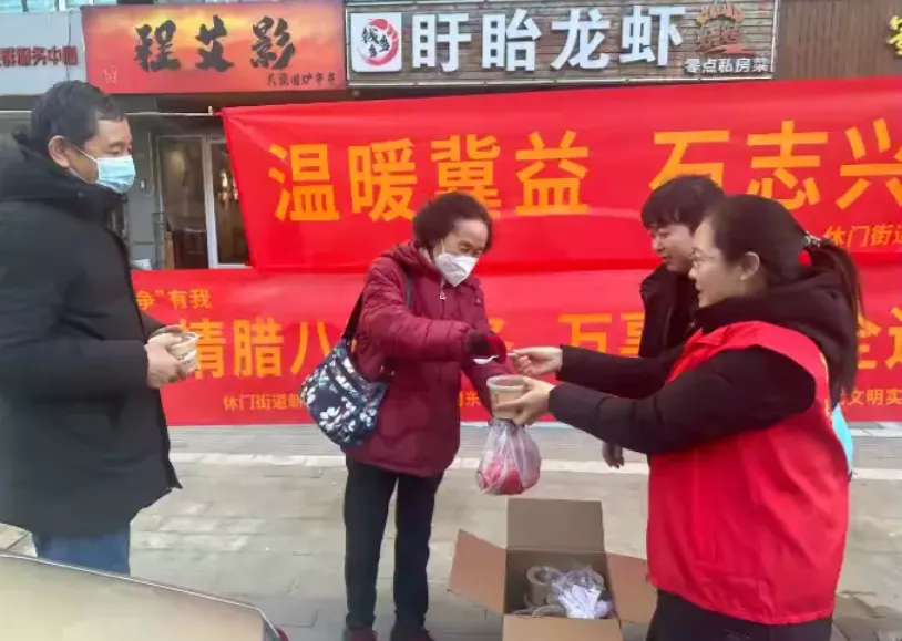 休门街道休门东街社区为户外工作者等新就业群体及辖区居民分发腊八粥,并送上新年的美好祝愿,让爱心在这个冬季持续升温。