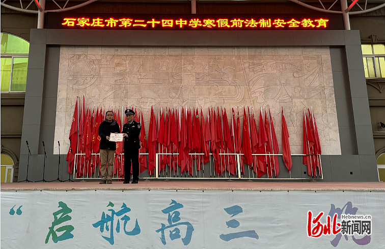 为大力弘扬宪法精神,切实加强未成年人法治宣传教育,增强未成年人的法治观念和法律素养,1月13日,石家庄市第二十四中学邀请桥西区维明派出所指导员李晖到校,为学生进行了一场“与法同行 法护未来”法治宣传主题讲座。