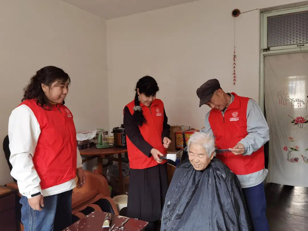 “爱心来敲门”志愿服务队志愿者段晓荣是小区里有名的理发好手,近日,她一边给社区80岁的老人杜二冬系围布一边说:“杜叔,您这头发长得挺快啊,上月刚剪的又这么长了。”