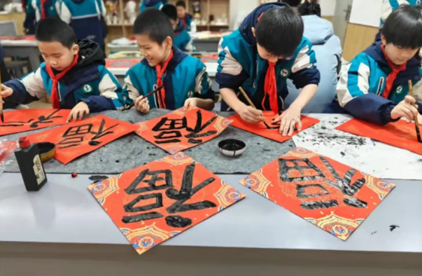 友谊街道富华社区则别出心裁,邀请西里小学的孩子们执笔书写“福”字。他们将作品赠予社区长辈,收获的不仅是夸赞,更有老人们回赠的书籍。一赠一还之间,是敬老爱幼的美德传承,也是书香墨韵在桥西社区的温情交融。