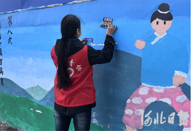 近日,在石家庄市桥西区留营街道南简良西街社区的文化墙前,来自河北师范大学汇华学院艺术学部青年志愿者协会的10余名志愿者,正有序开展墙绘维护工作。