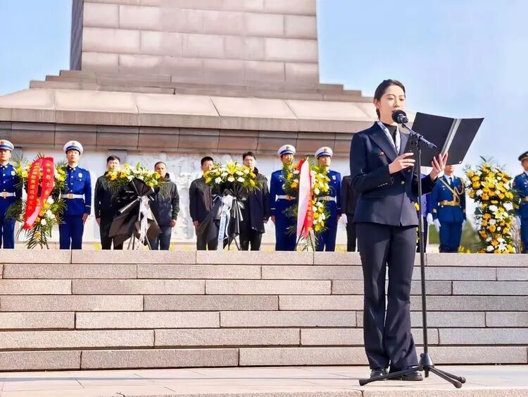 国歌唱毕,全场肃立,默哀一分钟。默哀期间,大家自觉脱帽,表达对英烈的深切悼念。默哀结束后,在低沉肃穆的《献花曲》中,汇通街道与桥西区退役军人事务局代表稳步上前,向烈士纪念碑敬献花篮。随后,全体参与人员回顾了国际共产主义战士白求恩的英雄事迹。