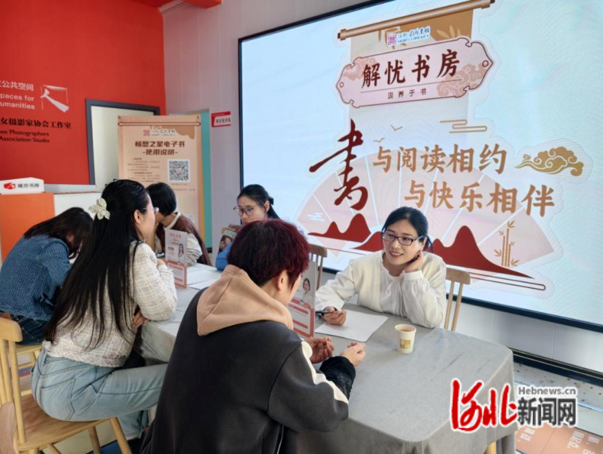 活动现场,河北省图书馆派出专业“解忧人”团队,带着配套的电子书资源,为前来参与的居民提供一对一的深度谈心服务。针对居民提出的生活困惑、亲子教育、家庭关系等方面的具体问题,他们耐心倾听,并结合专业知识进行心理疏导。
