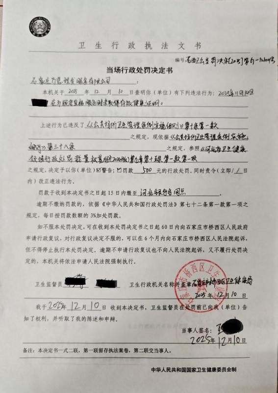 石家庄万思理发服务有限公司 行政处罚公示