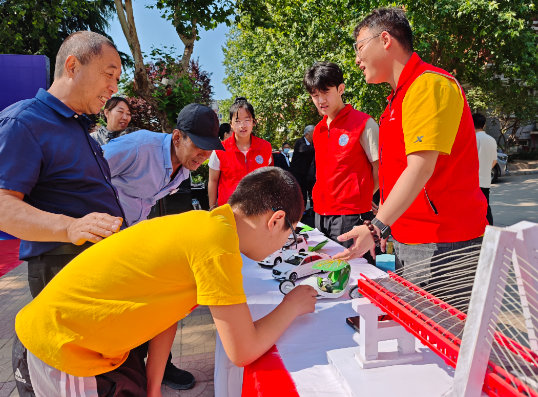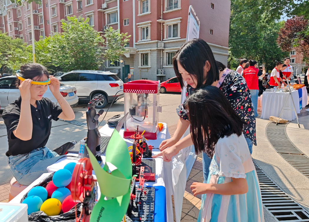 在社区广场上,五大特色展区吸引众多居民参与。航空科普展台不仅有航天模型展示,还有科普志愿者现场讲解航空飞行的原理与知识,居民可通过体验模拟飞行,直观感受航空技术的发展和应用。