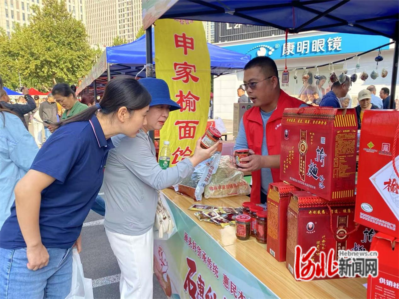 9月26日,石家庄市桥西区兴合商城广场上人头攒动,为期7天的“石惠供销集市”热闹开市。活动现场两侧摊位整齐排列,雪花梨、粉条、茶叶、粗布床品、酒、食盐等300多种商品琳琅满目,吸引市民驻足选购。