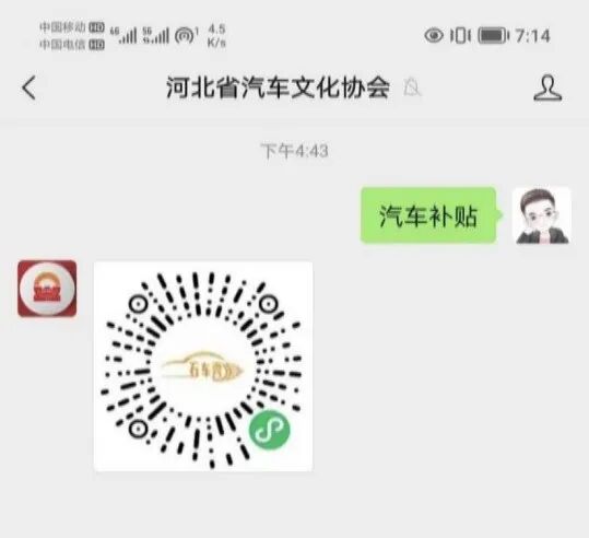 领取购车补贴通道二:打开微信,关注“河北省汽车文化协会”公众号,回复“汽车补贴”,自动弹出“石车秀车网”小程序二维码,长按识别二维码,进入石车秀车网小程序,在首页上点击“桥西区汽车促消费补贴领取入口”。