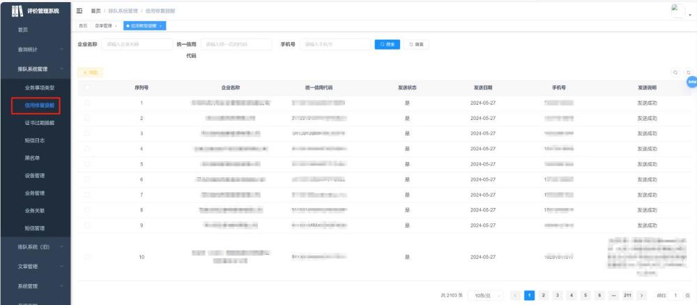 今年以来,桥西区行政审批局按照《河北省“信用修复高效办成一件事”工作方案》要求,在设立“信用修复高效办成一件事”窗口的基础上,为进一步提升信用修复效能,通过自主开发的“云提醒”服务,为即将满足办理信用修复业务条件的企业提供修复提醒服务,包括已满足最短公示期的“信用中国”行政处罚信息公示企业、列入异常经营名录的企业、市场监督领域严重违法失信企业。对以上企业,通过手机短信的形式,将列入原因、修复途径、咨询电话等信息发送至企业联络人员,提醒企业尽快修复自身信用。该项服务自开通以来,已累计发送短信4000余条,提醒企业2000余家,得到企业广泛好评。
