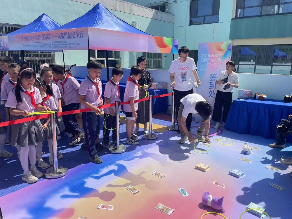 在外围活动区,陈列的案例展品和充满趣味的套圈活动吸引了孩子们的浓厚兴趣,在工作人员引导下,孩子们纷纷参与到游戏中,运用刚学到的儿童用品安全知识,对现场展示的消费品实物进行辨别和讨论,学习如何快速准确找到缺陷问题。