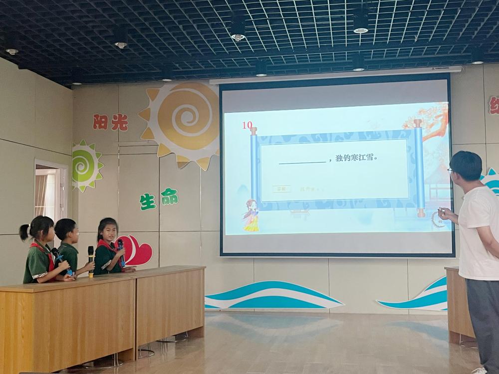 西岗头小学举行“赏中华诗词,品经典之美”校园诗词大赛。诗词小考官检查学生们本学期必背古诗词背诵情况,给出相应的星级评价,经过层层选拔54名选手参加现场诗词大赛,既有诗词接龙、飞花令等团体赛,也有九宫格、图片线索题等个人赛。选手们沉着应对,尽显丰富的诗词储备,在欢乐的氛围中培养学生们对古诗词的热爱。
