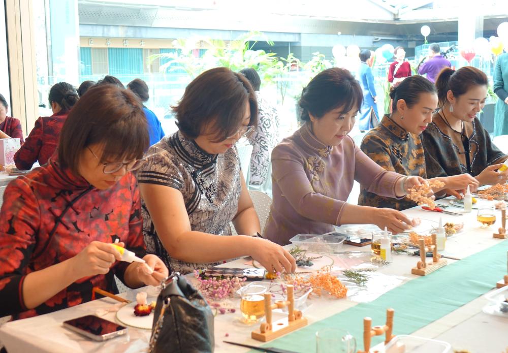 在旗袍妆造环节,旗袍文化专家和色彩专家从旗袍的韵味开始,谈及如何展现良好的自身形象,如何使形体仪表更好演绎中国旗袍文化魅力等。女职工们在专业团队的帮助下进行旗袍妆造,展现出了新时代女性的知性和典雅。在随后的永生花团扇制作中,女职工们在老师的带领下“巧手生花”,几片叶子、数朵干花,一幅幅充满创意的作品跃然扇上,传统团扇与现代永生花元素巧妙结合。在国风旗袍拍照环节,各具特色的旗袍与知性优雅的女职工一起,构成了一道道靓丽风景线。