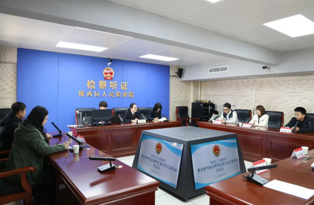为切实守护群众舌尖上的安全,维护消费者的合法权益,3月20日,桥西区检察院邀请人大代表、人民监督员、“益心为公”志愿者、行政机关代表就市场驴肉销售乱象召开听证会。