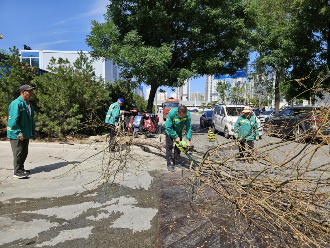 演练组织了17个管护队伍、70余名抢险人员、10辆抢险车辆、17辆电动三轮车,涵盖警示标志设置、处理倒伏树木、折断枝修剪等应急场景。