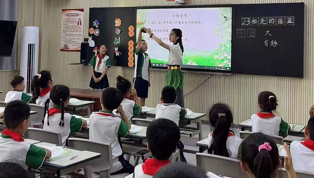 实验学区在石家庄市五里庄小学开展语文联片教研活动,以“任务群视域下的文学阅读与创意表达”为主题,聚焦课堂,通过观摩、评课的方式,促进教学思想的碰撞与交流,推动教师的专业成长和教学质量的提升。五里庄小学教师用AI生图带领学生们穿越时空看到祖先的生活;红旗大街小学的教师组织孩子们开展角色扮演活动,通过模拟拉弓射箭的场景,让学生亲身感受后羿射日时不畏艰难险阻的精神。在评课环节,教师们就这两节风格迥异的课例展开研讨对话,总结反思,不仅优化了教学方法,还相互学习提高了自身的专业素养。