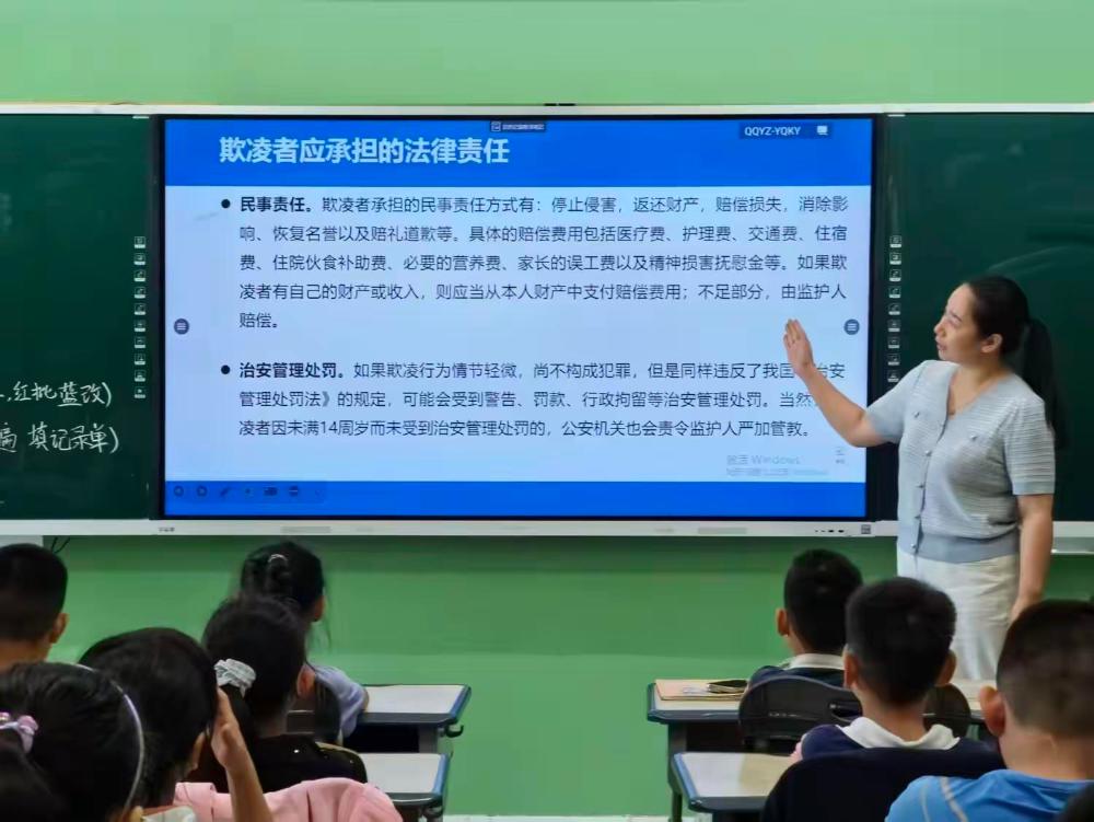 桥西实验小学以“拒绝校园欺凌”为主题,开展了系列法治教育活动。新石派出所民警走进校园,结合小学生认知特点,对《中华人民共和国未成年人保护法》相关条款、欺凌行为可能引发的校规以及法律后果进行详细讲解,现场传授避险三招,并演示了正确报警方式,使学生掌握了关键防护技能,进一步认识到欺凌的危害。