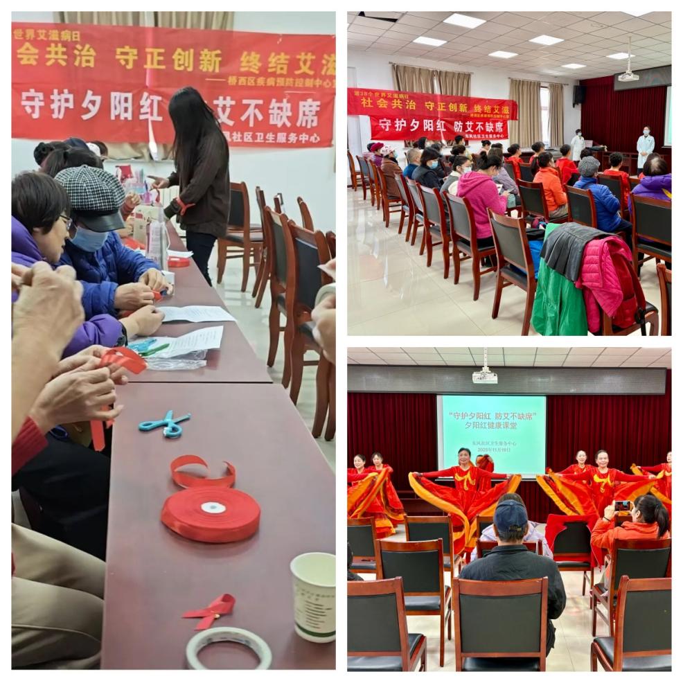 为精准应对老年群体艾滋病感染风险上升的趋势,11月19日,桥西疾控中心结合东风中心老年人艾滋病项目,开展“守护夕阳红 防艾不缺席”的主题宣传活动,将科学防护知识送到老年居民身边。活动现场播放艾滋病防治宣传片、组织手工制作红丝带,还邀请舞蹈队进行表演,在丰富文化体验的同时,引导老年人树立“主动检测、科学防护”的健康观念。现场累计发放宣传折页100余份及各类宣传品,让防艾意识自然融入社区生活的方方面面,用多元形式与贴心科普共同筑牢银龄健康防线。