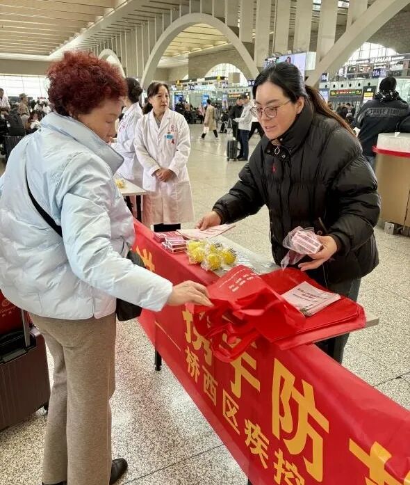 2025年12月1日是第38个“世界艾滋病日”,今年我国宣传主题为“社会共治,守正创新,终结艾滋”。为进一步筑牢公共卫生安全防线,提升广大群众艾滋病防治意识与自我防护能力,桥西区疾控中心联合桥西区妇联、铁路疾控中心,在人流量密集的石家庄站开展了一场形式多样、内容扎实的艾滋病防治主题宣传活动,让防艾知识随出行一路同行。