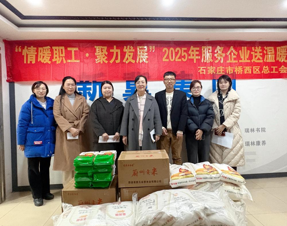 为落实服务职工、助力企业发展相关部署,近日,桥西区总工会以 “情暖职工・聚力发展” 为主题开展送温暖活动,领导班子带队深入辖区建会企业,为石家庄中迪房地产开发有限公司、河北宏苑宾馆有限责任公司、石家庄业之峰装饰有限公司等建会企业送去慰问品和工会建设专项资金,将党和工会的关怀温暖送到职工身边。