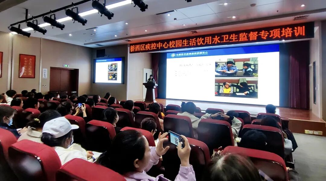 为进一步提升学校及托幼机构生活饮用水卫生管理水平,切实保障广大师生饮水安全,桥西区疾病预防控制中心组织举办了一场学校生活饮用水卫生监督专题培训。全区各学校、幼儿园分管负责人、生活饮用水管理工作人员及卫生协管员共计300余人参加培训。