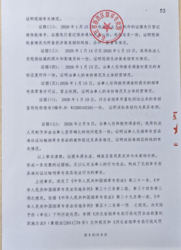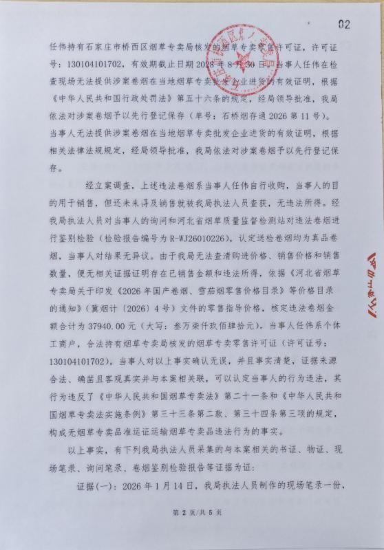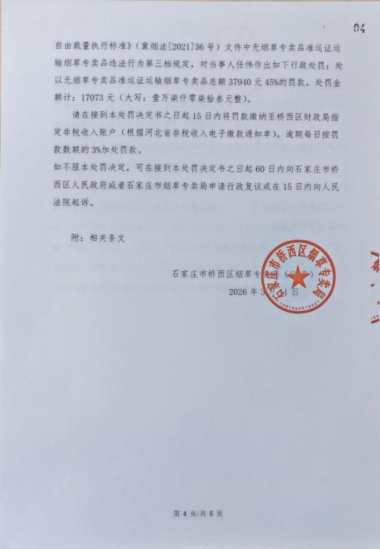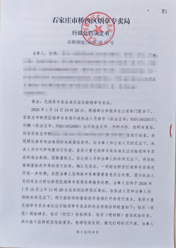 石家庄市桥西区烟草专卖局行政处罚决定书公示(石桥烟处【2026】第11号)
