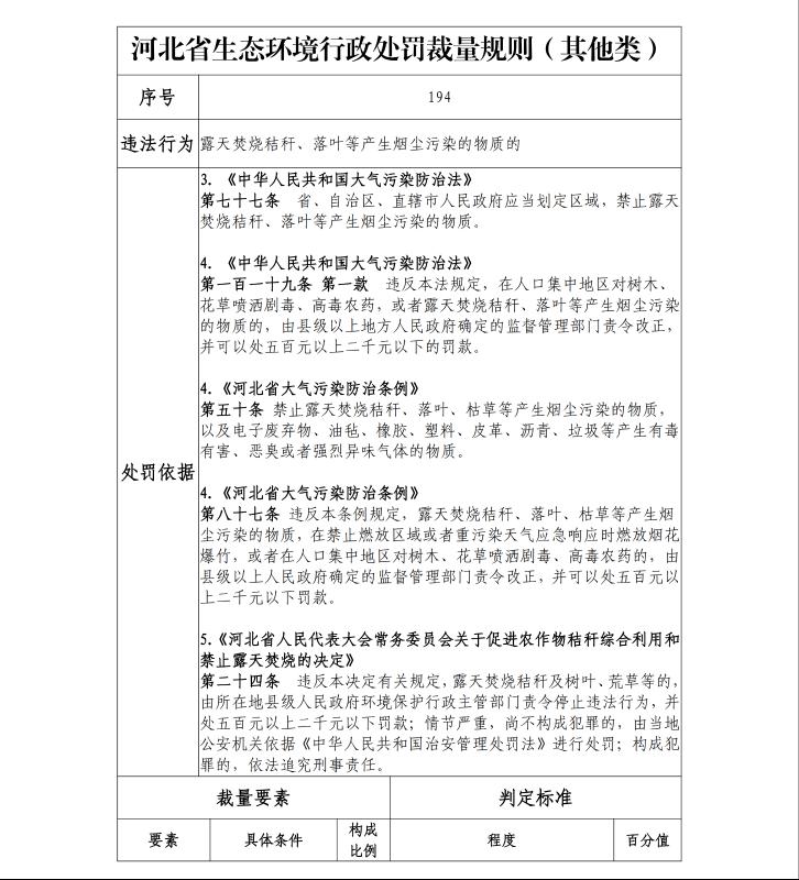 8.对露天焚烧秸秆、落叶、枯草等产生烟尘污染的行政处罚