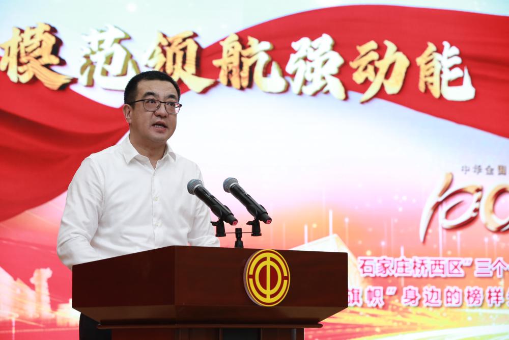 为庆祝中华全国总工会成立 100 周年,在“五一”国际劳动节即将到来之际,4月28日,石家庄市桥西区总工会在石家庄市第十七中学举办“三个一”新质精品工程——“一面旗帜”身边的榜样先进事迹分享交流活动。市总工会党组书记、常务副主席田志,石家庄市总工会党组成员、秘书长王海,桥西区委副书记、区长南龙,区人大常委会副主任、区总工会主席蔡玉霞,桥西区人民政府副区长邢锋,桥西区政协副主席杨树新出席活动。
