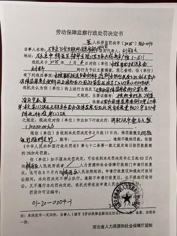 石家庄飞谷互联网信息服务有限公司行政处罚决定书