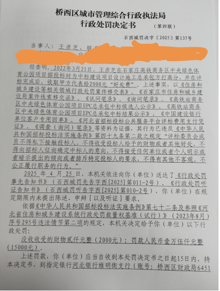 石家庄高铁商务区中央绿色体育公园项目社会评标专家王彦芝、朱振强、王鹏涛、刘英巧收取“好处费”(137)