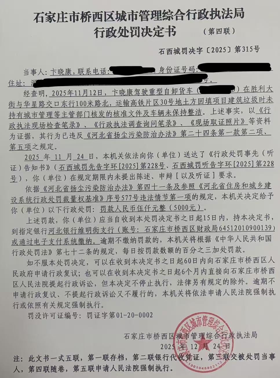 石西城罚决字【2025】第315号 | ||