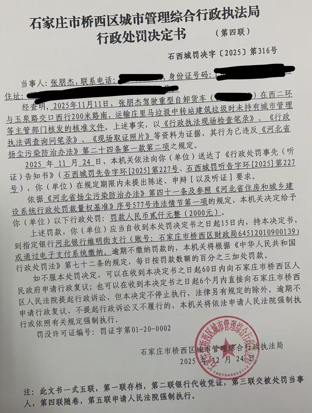 石西城罚决字【2025】第316号 | ||