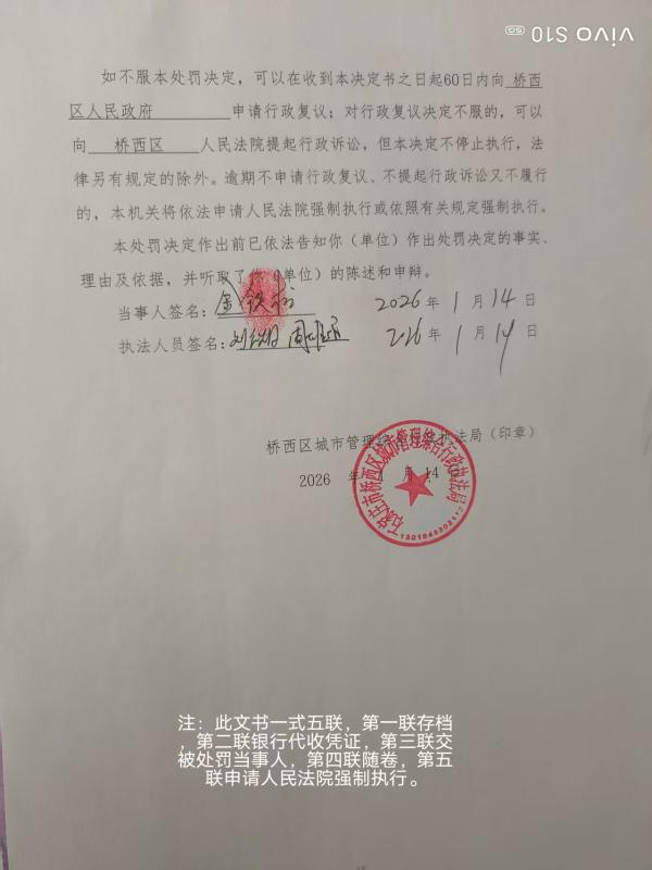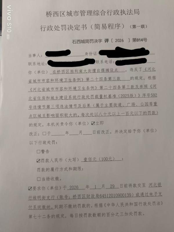 金铁柱在桥西区胜利南大街擅自摆摊设点案(简评[2026] 第014号)